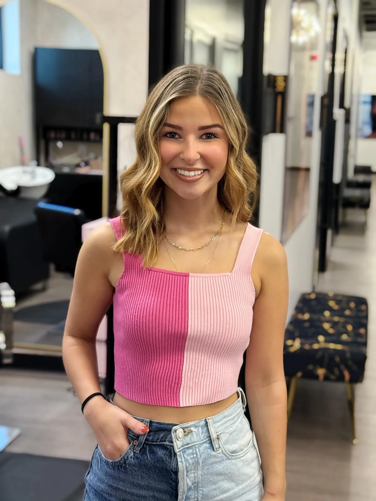 Hi, I’m Virginia! I’m a stylist who loves creating bright blondes, soft lived-in looks, and rich dimensional brunettes that grow out beautifully and feel effortless day-to-day. I’m also certified in Invisible Bead Extensions®, which allows me to offer my guests fuller, longer hair with the most natural and comfortable method available.